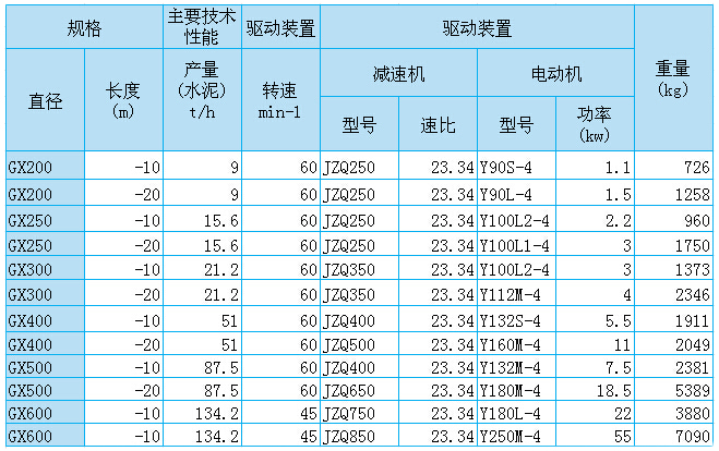 GX型螺旋輸送機的螺旋直徑有150、200、250、300、400、500、600mm七種,機長3-70m,可在環(huán)境溫度為-20~50℃的條件下,以小于20°的傾角單向輸送溫度低于200℃的物料。